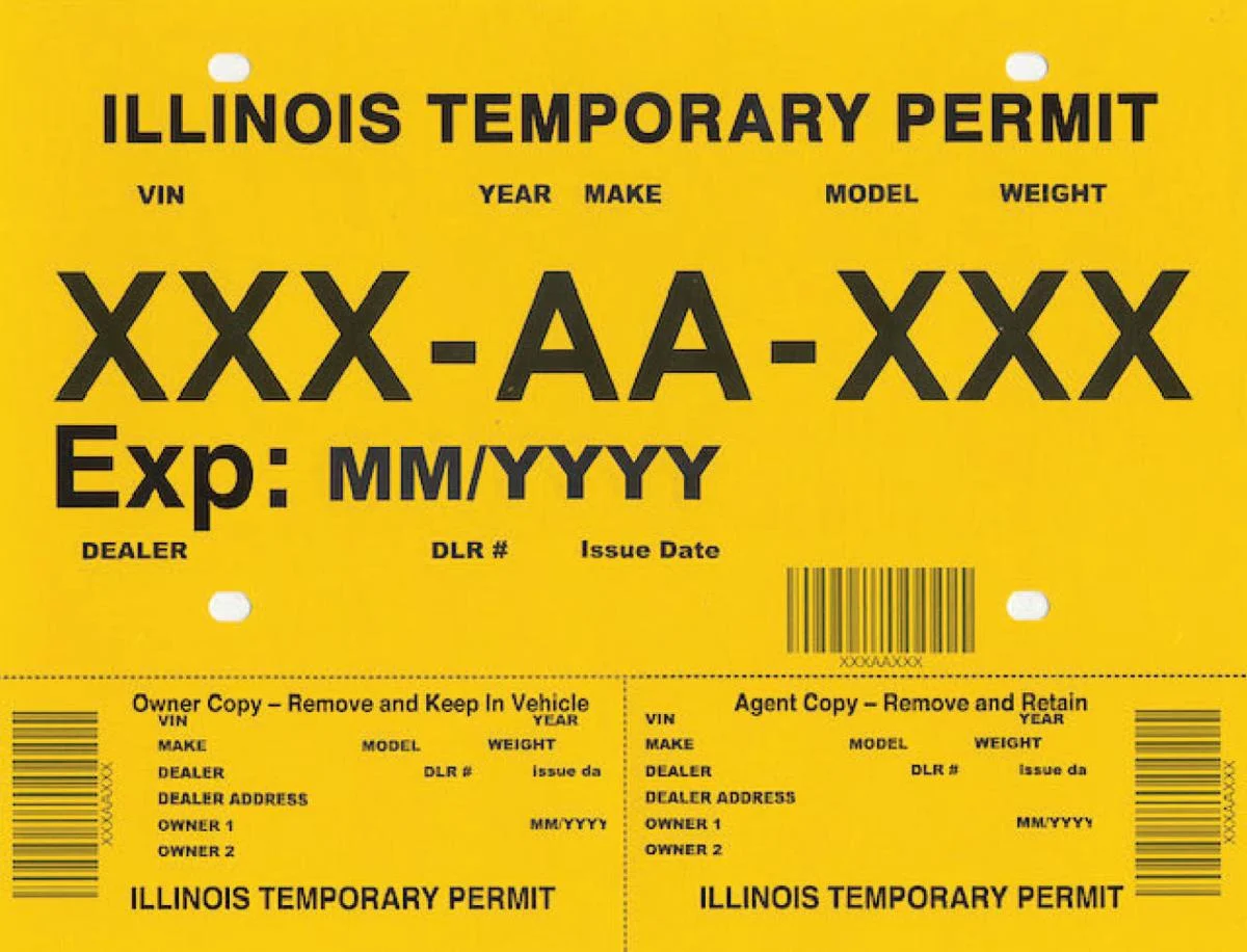 EJEMPLO DE PLACAS TEMPORALES EN ILLINOIS