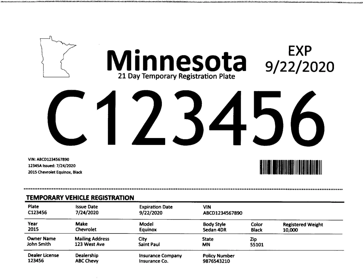 EJEMPLO DE PLACAS TEMPORALES DE MINNESOTA